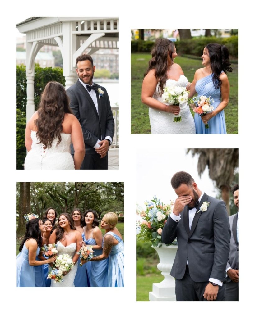 The day began at The Westin Savannah, where Christina and her bridesmaids got ready surrounded by natural light and fun anticipation. One of the most touching moments followed shortly after: a sweet first look overlooking the Savannah River. With the water behind them and emotions running high, it was a beautiful start to a day centered on love and connection!