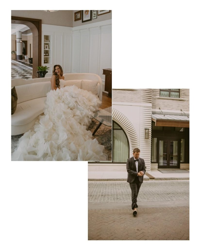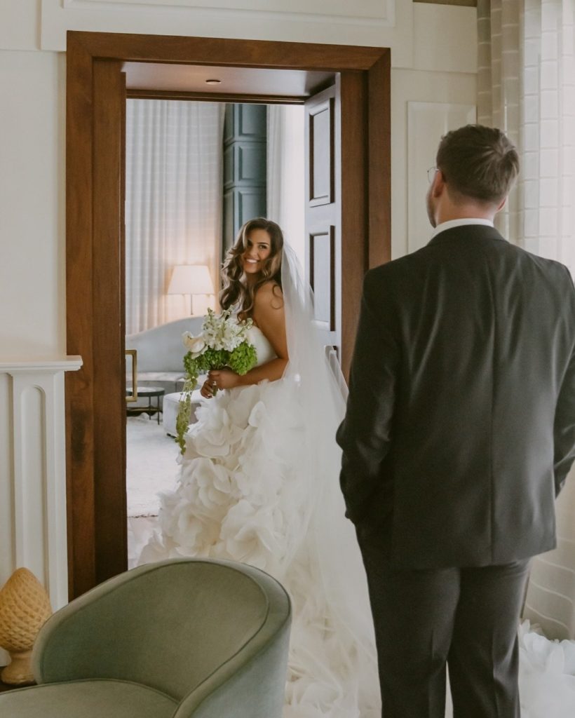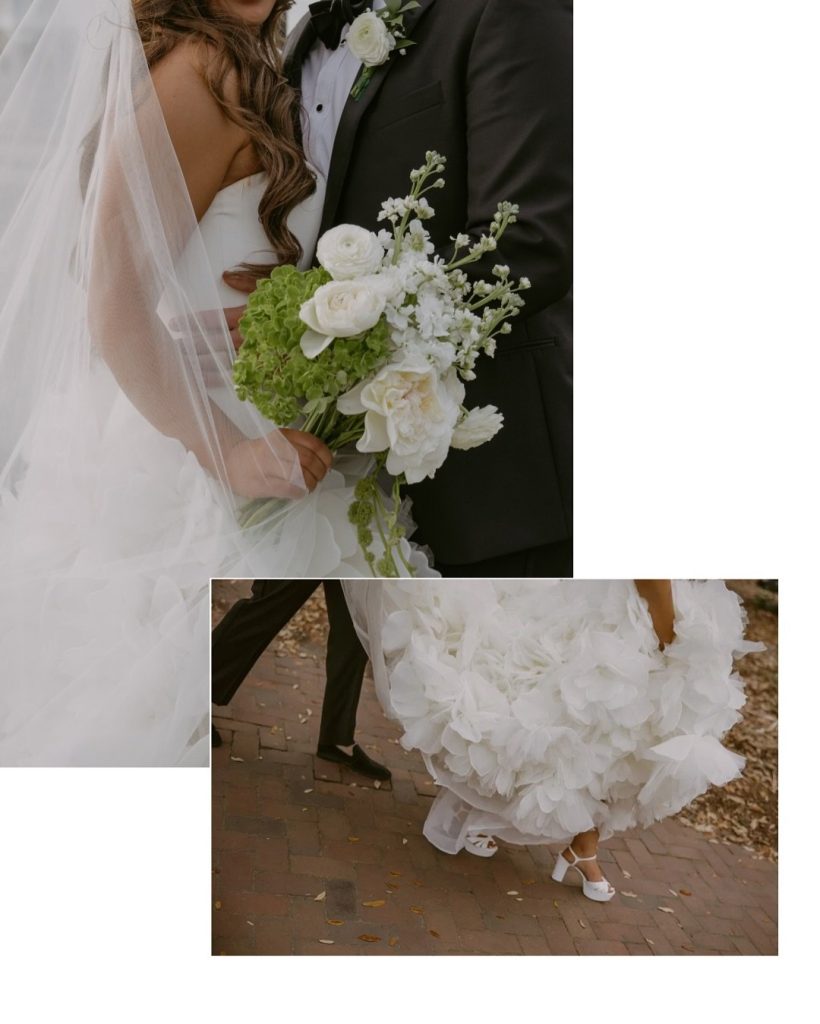 The couple blended classic, timeless details with elevated, personal touches. Haley’s gown, paired with a soft color palette of whites and greenery, complemented the romantic florals and sophisticated elements that tied the entire day together. Beyond the beauty of the decor and setting, the celebration was brought to life through the palpable connection between the couple, their wedding party, and their guests. Every glance, laugh, and shared moment contributed to a visual story that was as authentic as it was stunning, and the stunning photos tell it all!