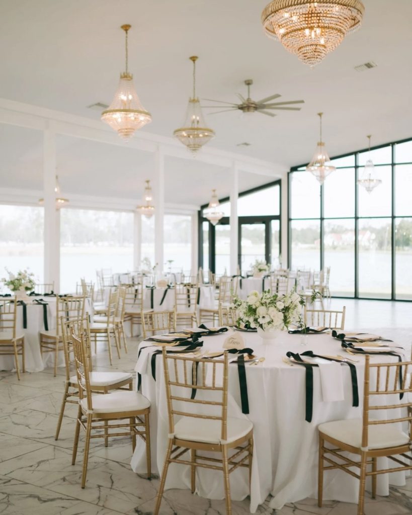 Chateau 1800 served as more than just a backdrop; it shaped the entire aesthetic of the day. The reception space, framed by its signature wall of windows, filled the room with soft, natural light from morning to dusk. This glow highlighted every detail, from the florals to the tabletop styling, and created an atmosphere that was perfectly warm and refined.