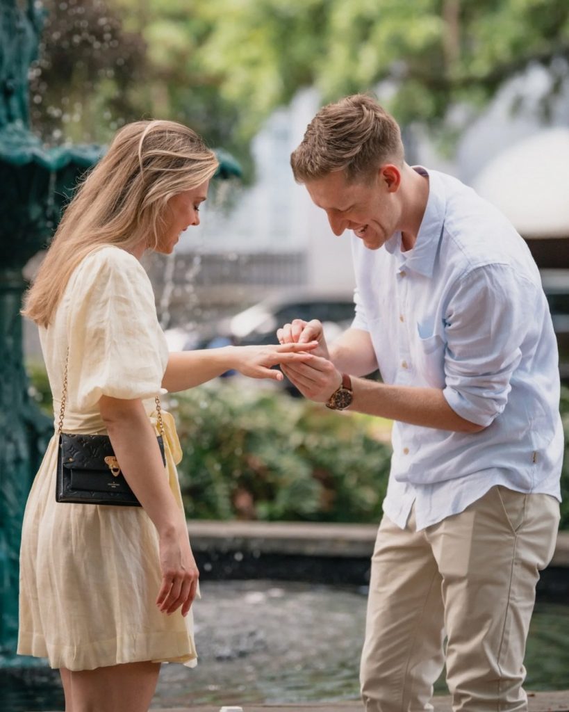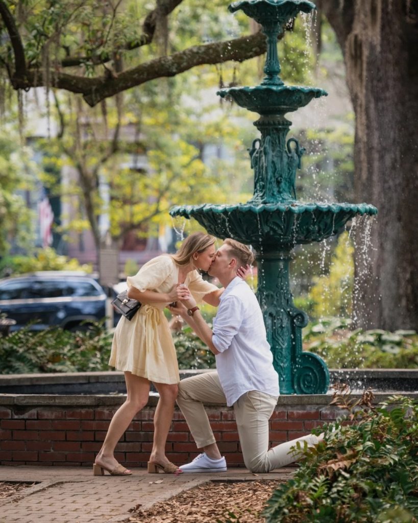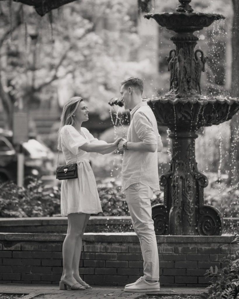 Justin planned the perfect surprise proposal for Holly in the heart of Savannah at Lafayette Square. Surrounded by historic charm, greenery, and the iconic fountain, the setting created a naturally romantic backdrop for such a meaningful moment.