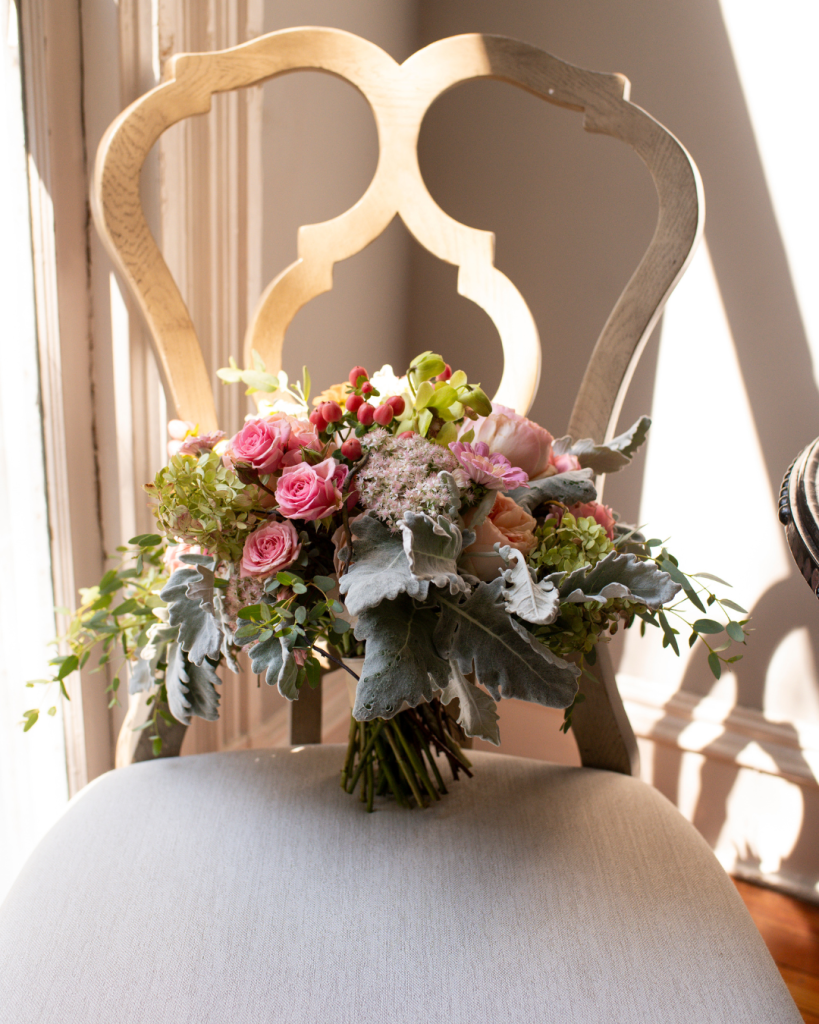 Every detail felt intentional and deeply personal. The groom’s mother, a retired florist, thoughtfully designed the lush pink-and-green florals. Filled with texture, movement, and soft romantic hues, her creations brought the entire celebration to life. Bride Leslie’s bouquet echoed this artistry… full, dimensional, and beautifully layered, complementing her lace-detailed gown with effortless sophistication.