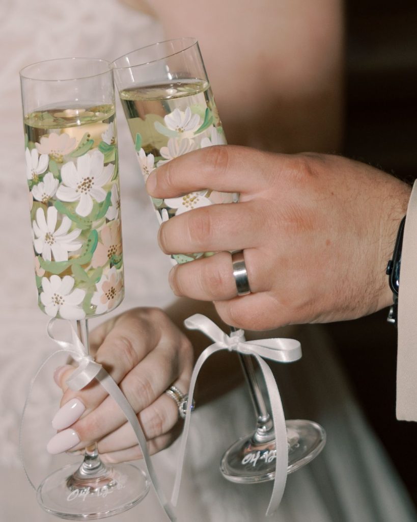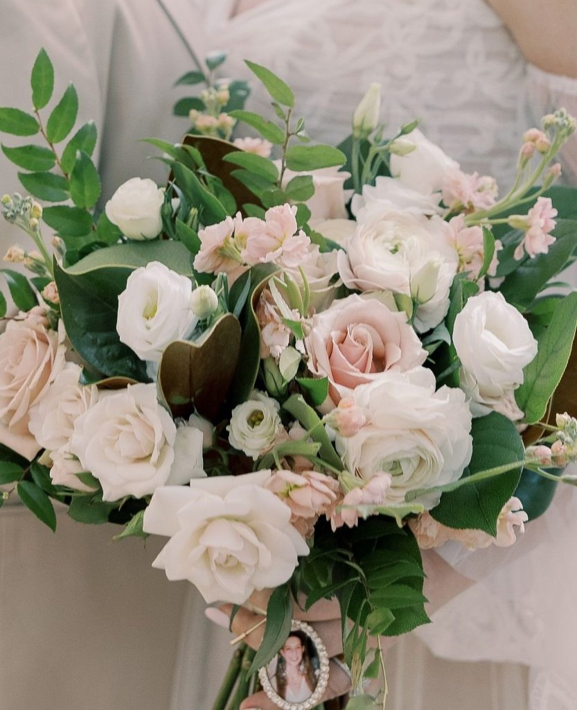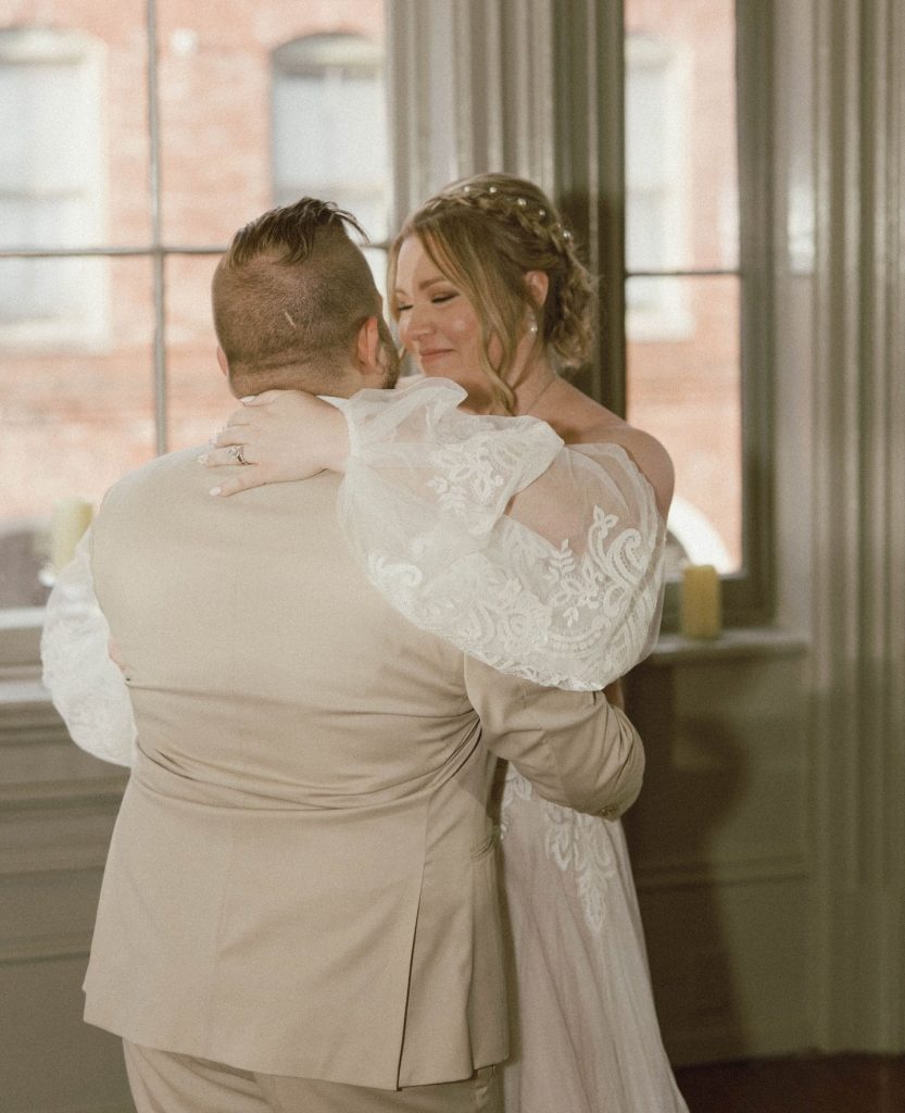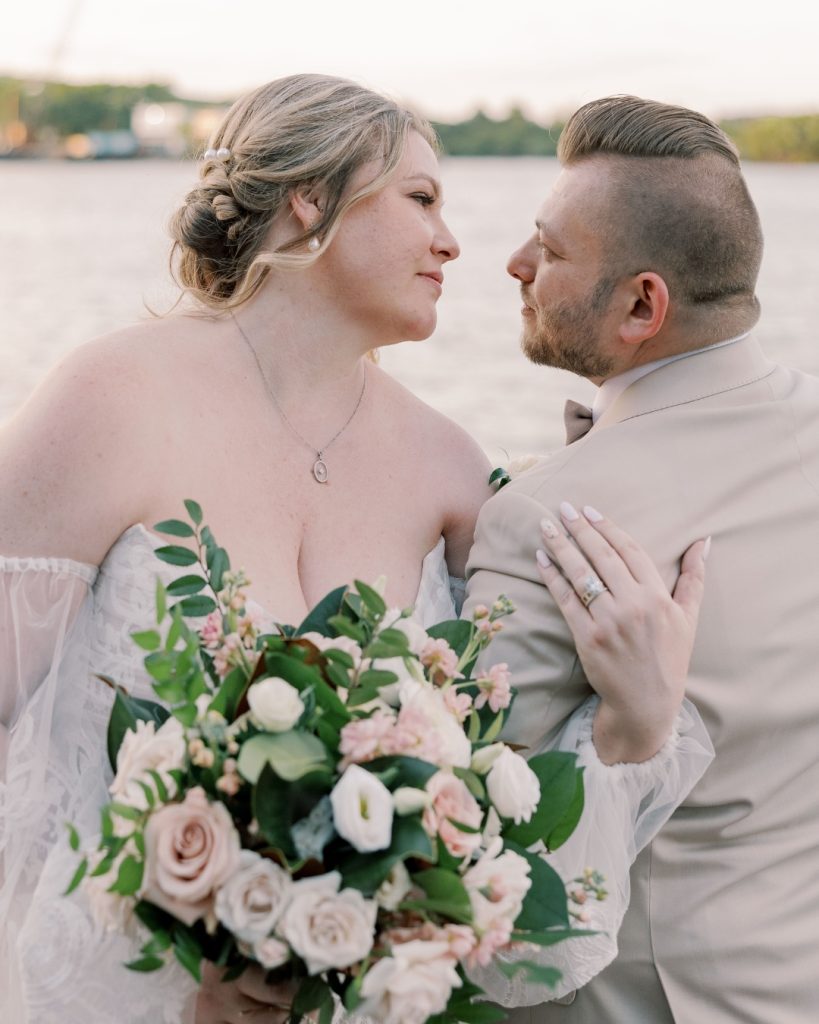 Ryann and Dave found thoughtful ways to honor their families and traditions. Dave’s Jewish heritage was celebrated with the breaking of the glass, wrapped in one of his grandmother’s napkins. To honor Ryann’s late mother, a memorial chair with white roses was placed at the ceremony, while Ryann carried her mother’s wedding photo in her bouquet and wore her engagement ring. These details made the day profoundly personal and emotional.