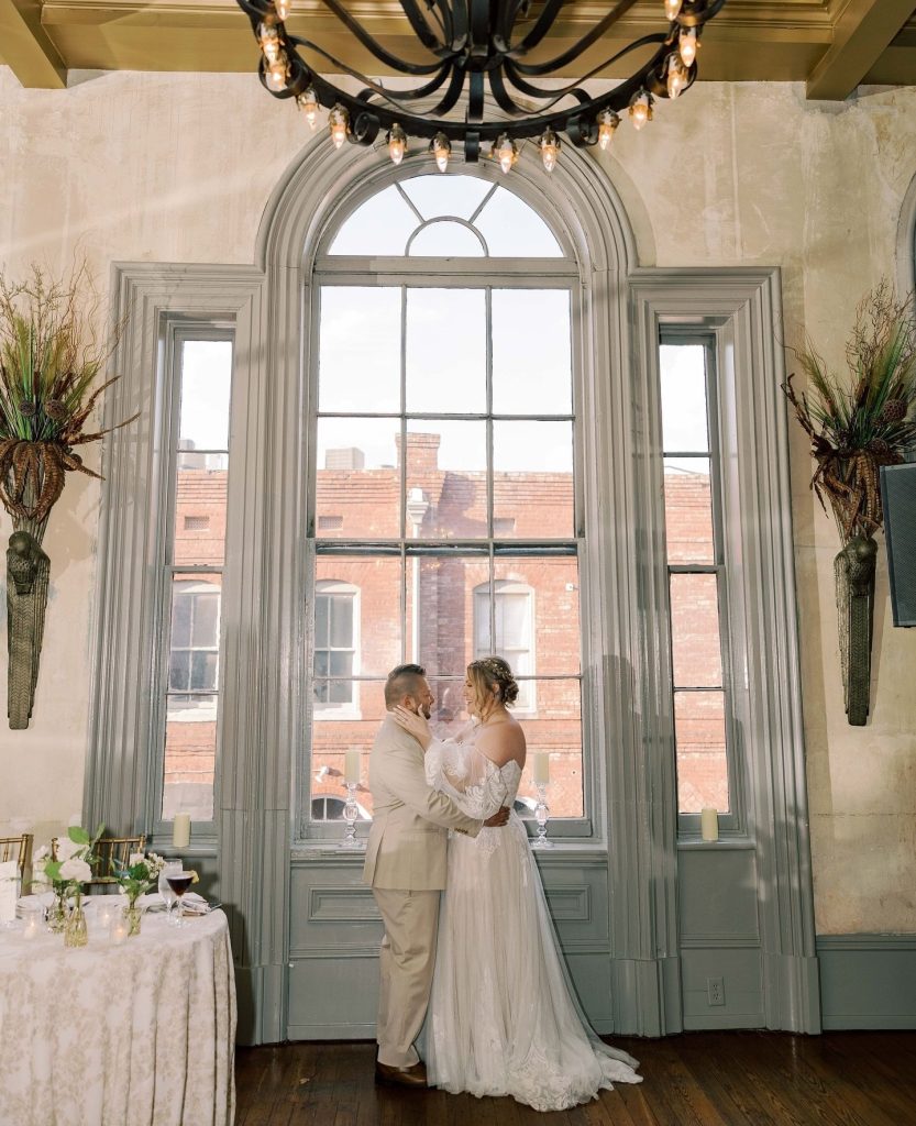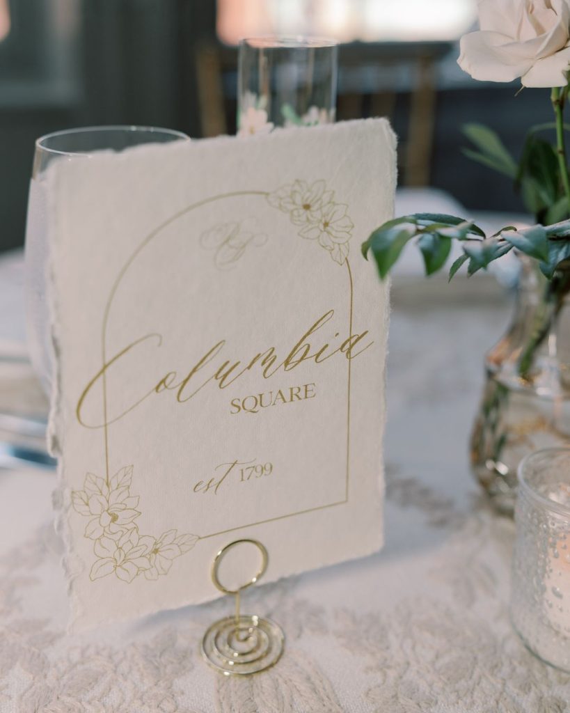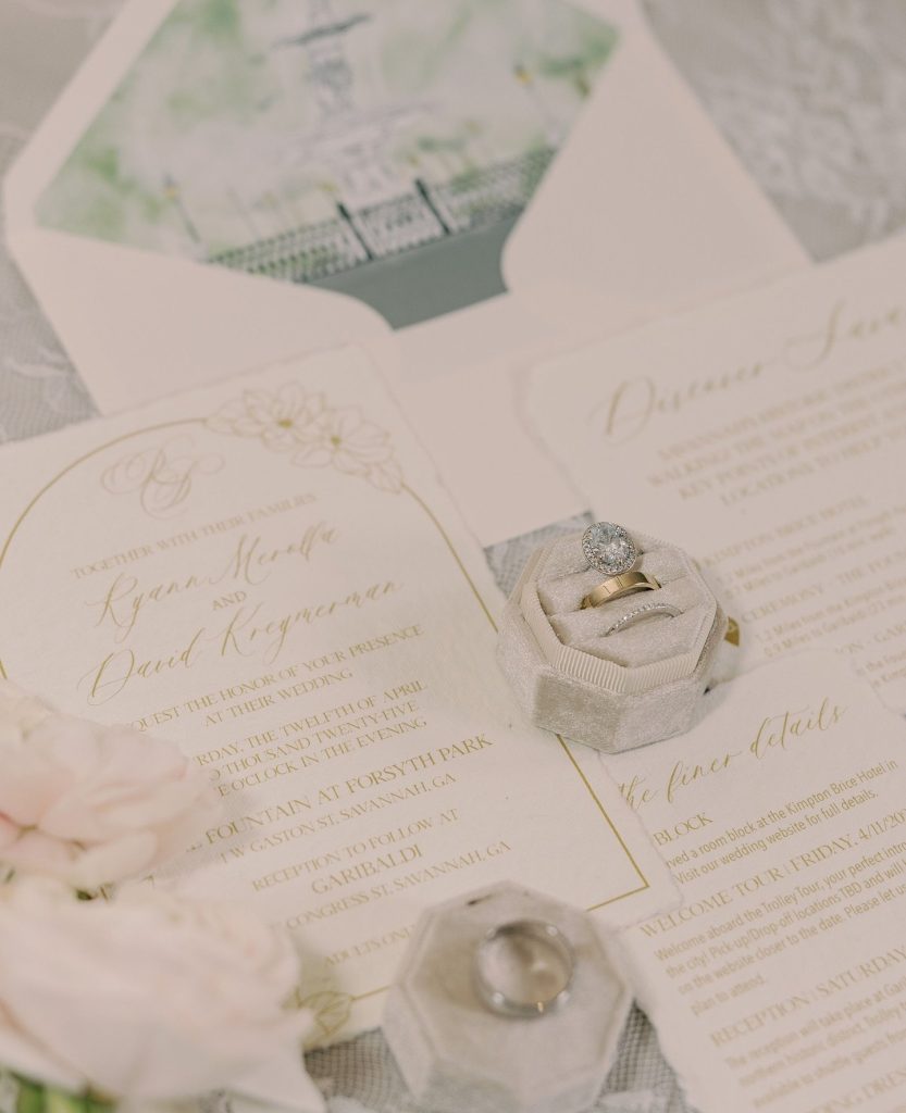 Ryann and Dave found countless ways to tie their personalities and love for Savannah into the day. Guests took home jars of honey from Capital Bee Company as favors, while reception tables featured custom-designed table tents that showcased Savannah’s original seven squares, complete with historical facts. These details gave guests an even deeper connection to the city and to the couple’s story.