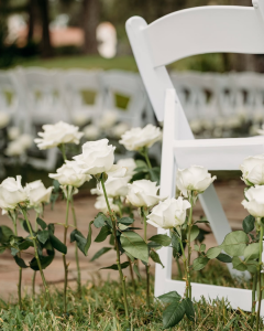 Instead of heavy aisle arrangements, brides are opting for rows of single blooms placed delicately along the aisle—either in clusters or individually.