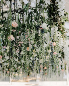 Floating floral clouds, hanging greenery, suspended blooms—ceiling installations continue to be one of the most breathtaking trends. They bring the “wow” factor and completely transform a space.