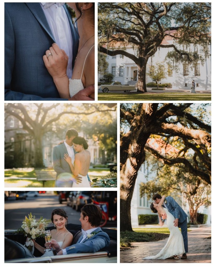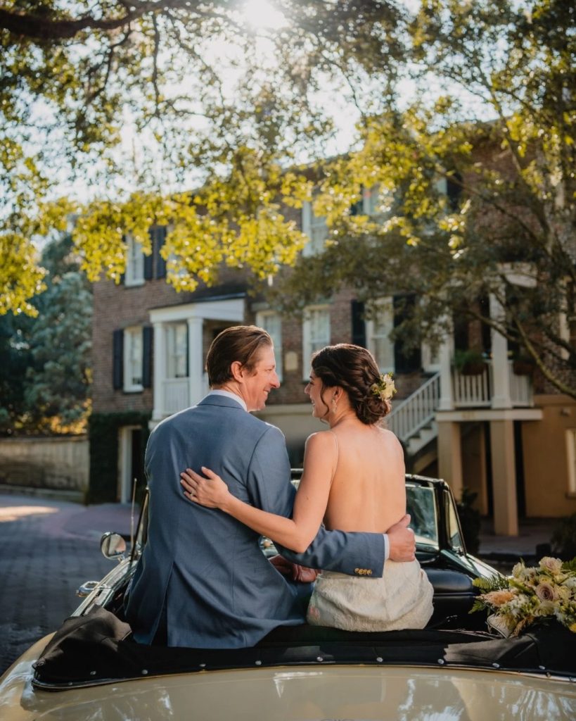 One of the standout parts of the day was their portraits around Savannah. From photos beneath the Spanish moss to shots along the historic streets, every backdrop captured the charm of the city. They also incorporated a yellow vintage car, which added a fun, unique element and made their portraits feel even more personal.