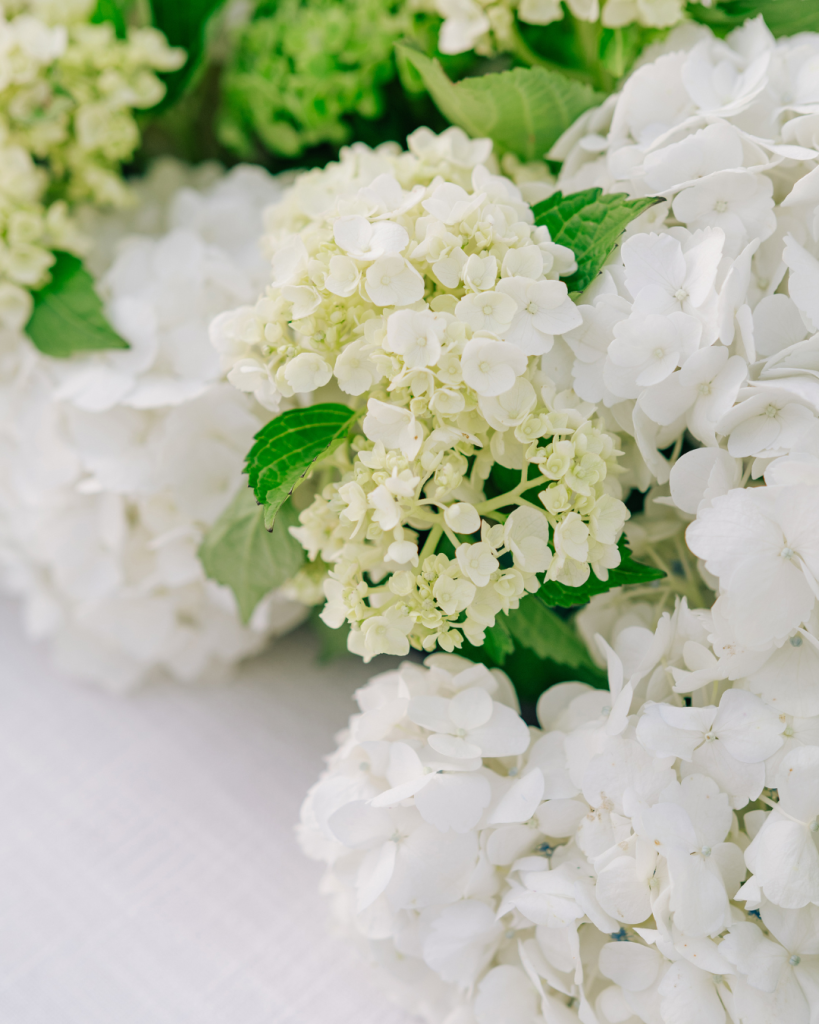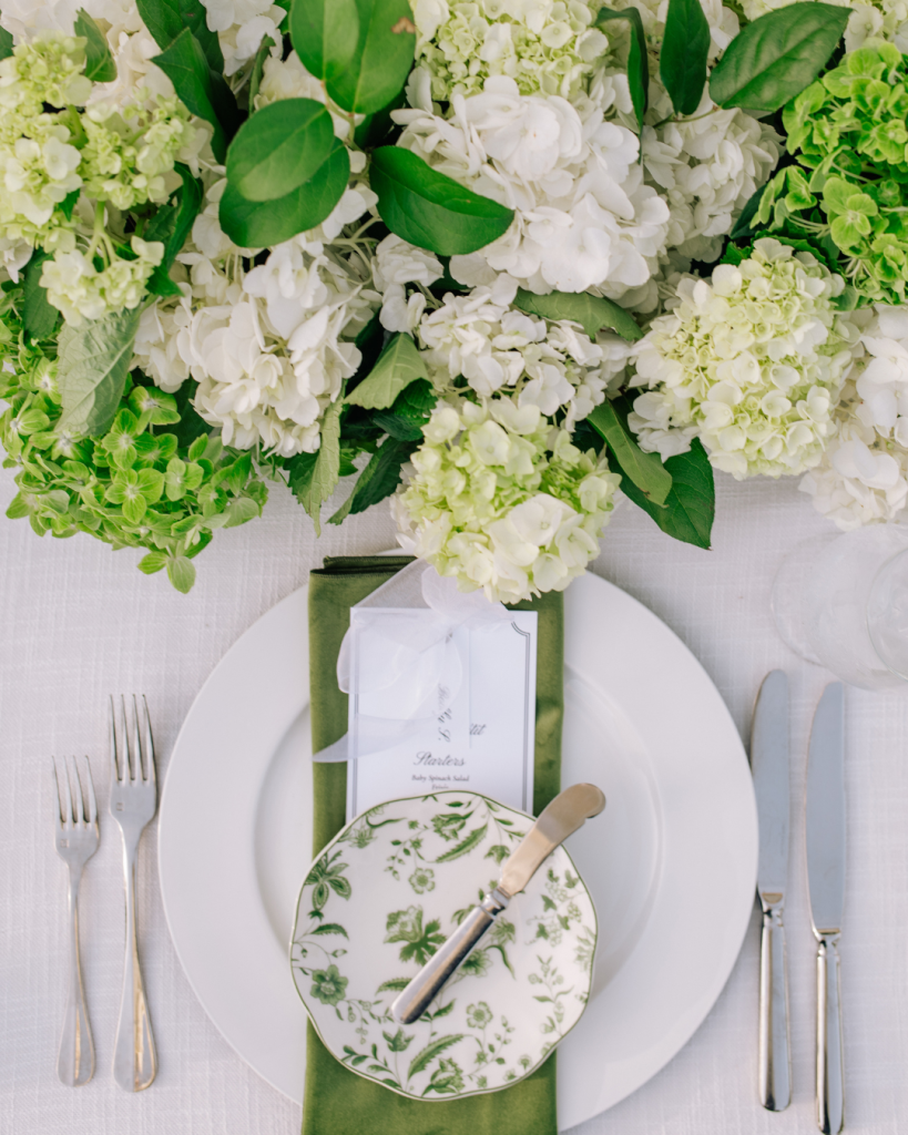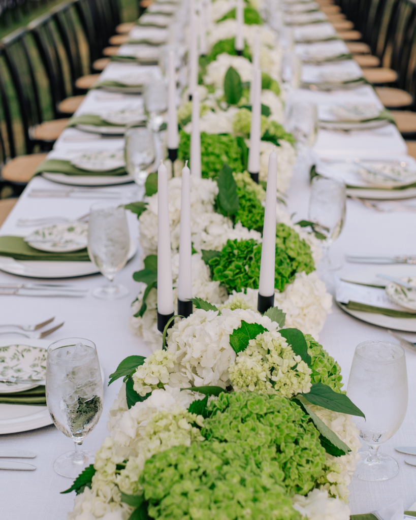 Annie even designed her own signage, invitations, and calligraphy, ensuring every detail felt intentional. Harvey Designs added refined beauty with hydrangeas, soft greenery, and floral textures that brought the modern white-and-green palette to life.