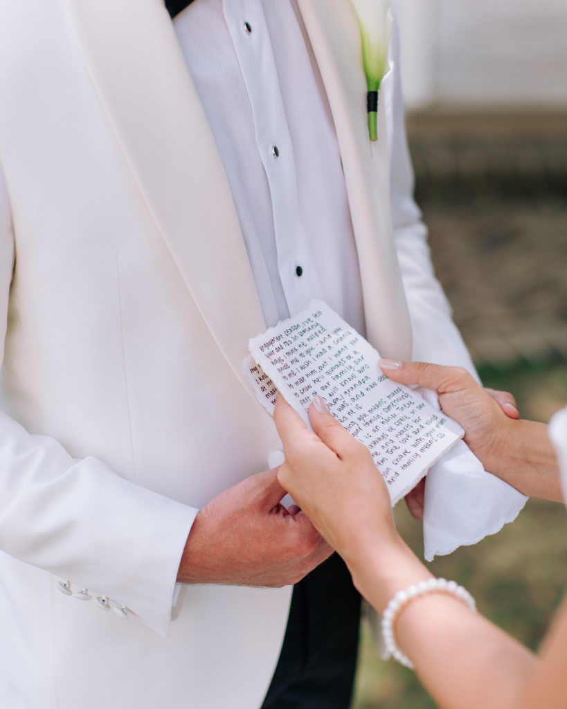 “We added small touches, like using a coffee table book as our guest book that featured a photo of the seaside area where I spent my summers growing up.”