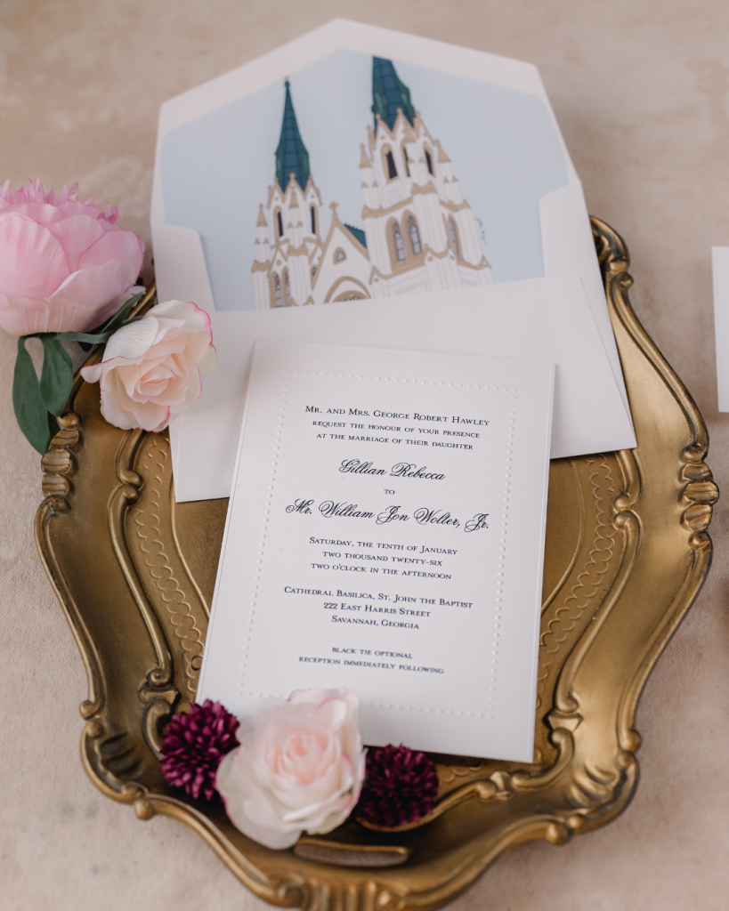“Gillian and Bill’s luxury Savannah wedding was filled with love–love that was evident in every look, touch and kiss they shared… That connection revealed itself in quiet moments and thoughtful details woven throughout the wedding.”