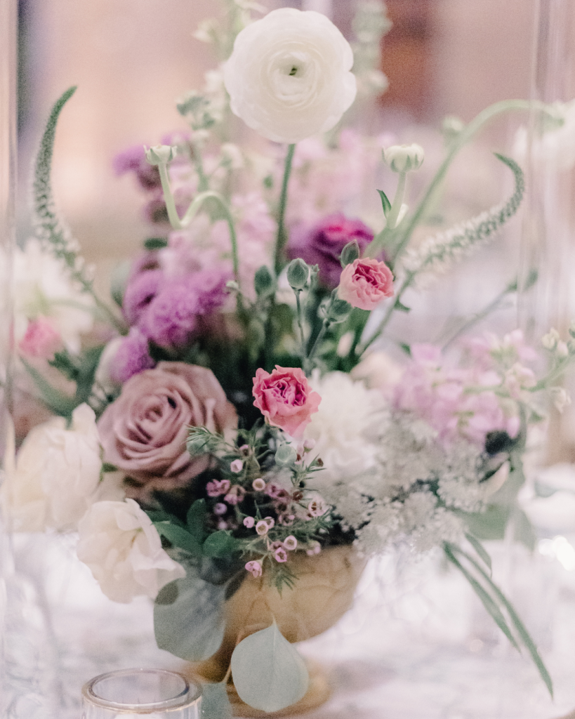 That mindset translated seamlessly into the aesthetic of the day. A vibrant palette of greens, light pinks, and fuchsia florals carried throughout the design, from lush arrangements to bridesmaid dresses, creating a look that felt both elevated and expressive. Soft candlelight and glowing reception details added warmth and romance, transforming the space into an inviting, intimate celebration.