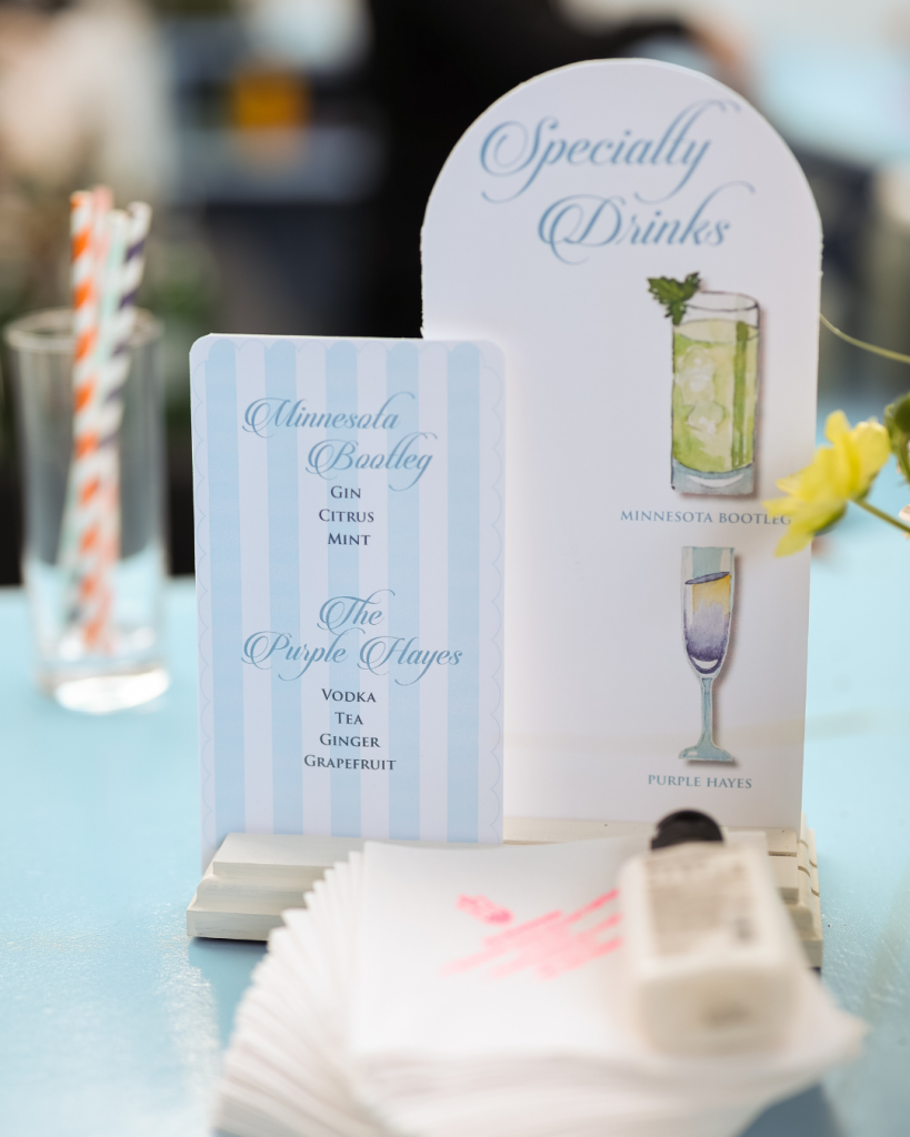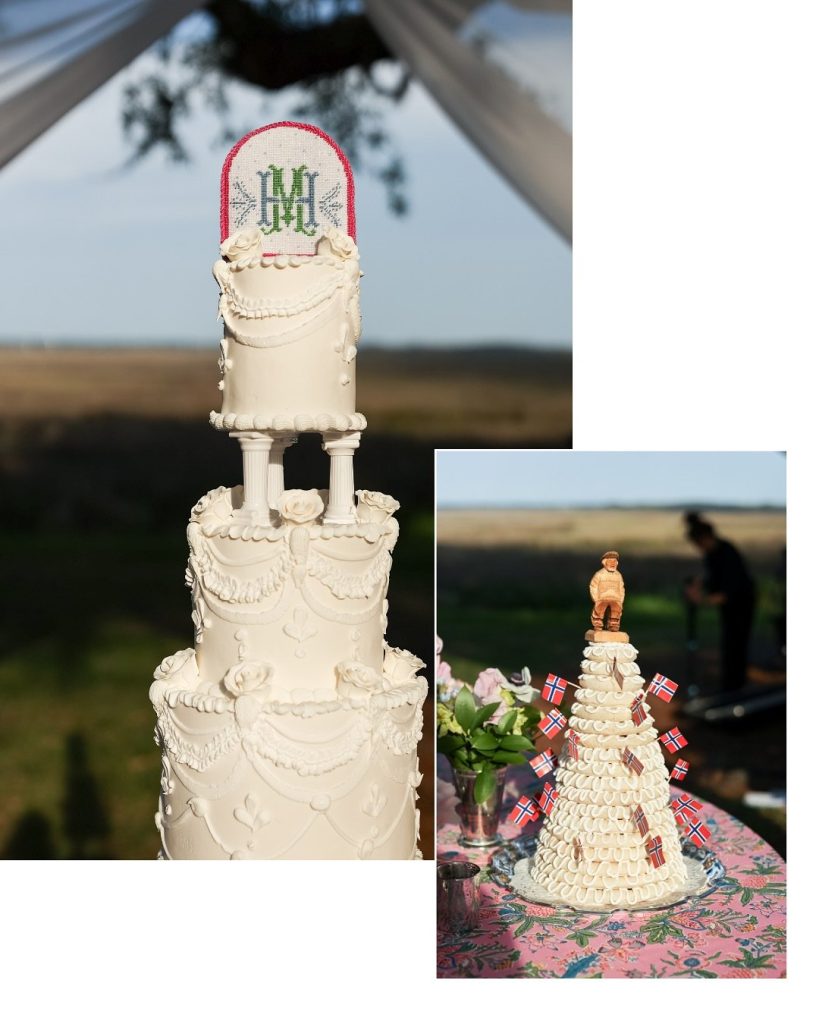 Guests enjoyed creative, handcrafted cocktails from Shaken & Stirred Mixology, whose team brought creativity, precision, and entertainment to every drink! From custom concoctions to perfectly executed classics, their bartending elevated the reception into an experience that was both stylish and spirited. The celebration also featured two show-stopping cakes by Vanilla and the Bean, artfully crafted with attention to every tier and detail. Bride Maggie shared, “We had two Norwegian wedding cakes (Kransekake) that my Aunt Becca made. This was in addition to our regular wedding cake. It is tradition to have the bride and groom pull the cake and see how many rings come off — the number of rings represents the number of children you will have. We had three! We also used Norwegian cake toppers on both Kransekake.”