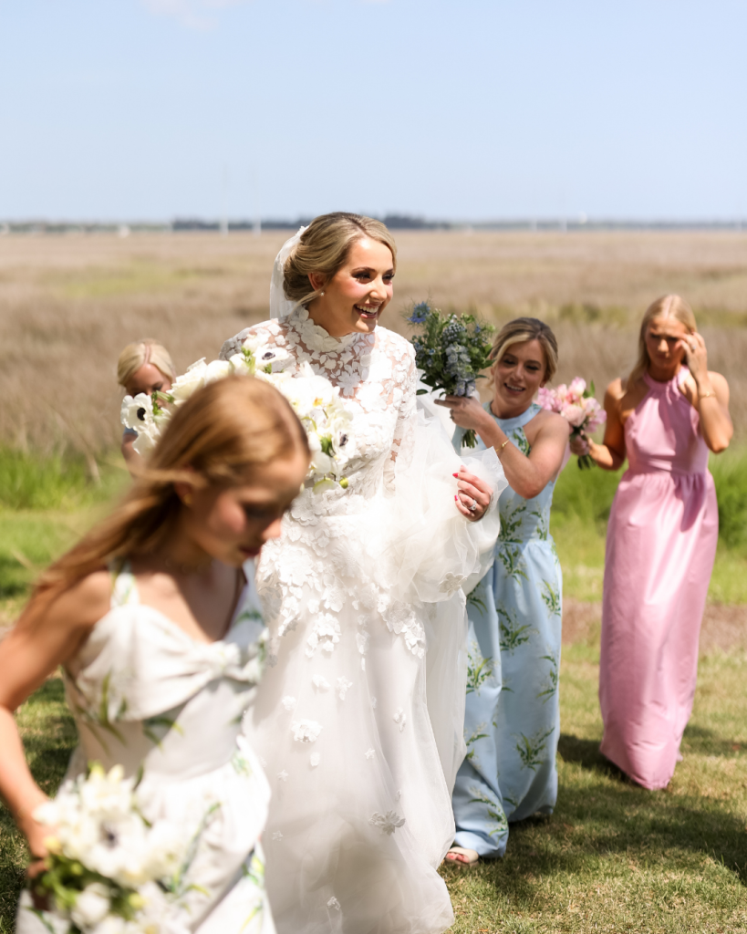 HollyOaks on the Marsh, a historic low country estate built over 80 years ago, offered the ultimate backdrop. Nestled on 18 acres, the property features expansive lawns, lush heirloom gardens, and sweeping views of the marsh. With its relaxed Southern charm and elegant spaces, the estate was perfect for both intimate moments and grand celebrations — from the heartfelt bourbon dig to the glamorous clear-top tent reception.